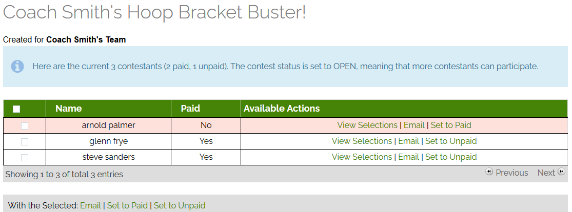 For each fundraiser, managers will have the option to contact participants directly to inquire about payment - and keep a public log of who has paid (and not paid - BOO!). Each and every participant will see the payment status of their peers, which in and of itself is an effective means to encourage timely payments!